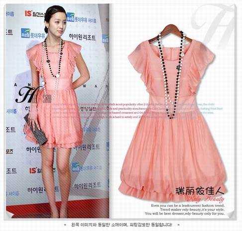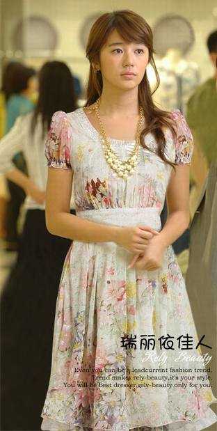 皇冠两件包EMS♀韩国订单~09明星款金泰熙甜美雪纺连衣裙~送项链