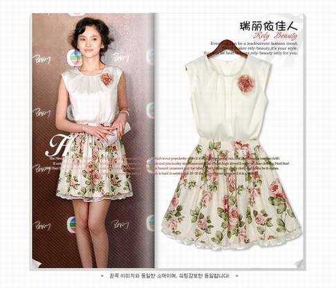 皇冠两件包EMS♀韩国订单~尹恩惠同款~雪纺大花朵连衣裙一 口 价:88.00元