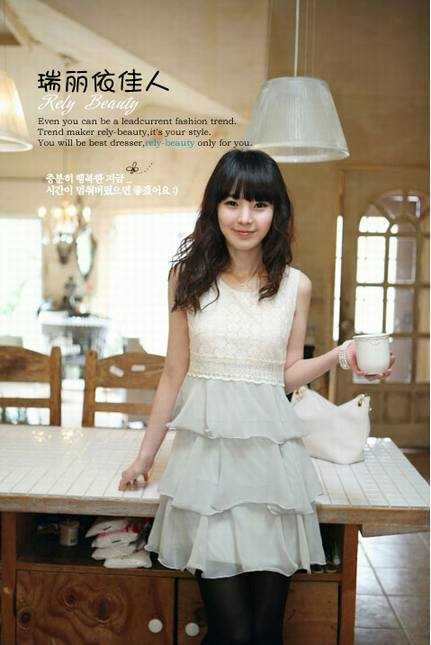 皇冠两件包EMS♀韩国订单~09新款韩版热卖唯美清新层叠雪纺连衣裙