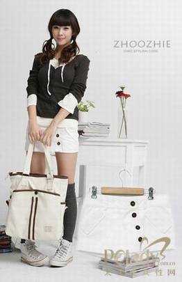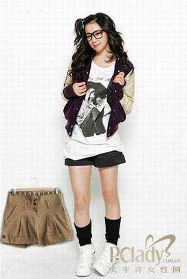 春天服装小短裤点评:这款短裤比较符合传统的潮流,帅气的卷边造型+简单的皱着,感觉比较中性风,模特搭配长白Tee和黑色泡泡袜超可爱的,腿部即使有点肉肉的也不怕,更显青春。