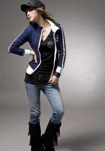 4、黑色T恤搭蓝色运动服配牛仔裤,黑色靴