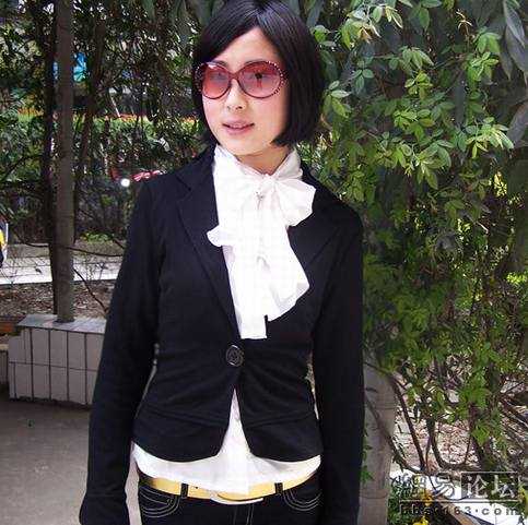 这个是可爱型,搭配一个今年很流行的韩剧女主角经典款——仿真丝的蝴蝶结,胸前荷叶边衬衣,不仅突显气质,而且增添了几分女士味和可爱,穿上它,韩剧女主角就非你莫属了哦!