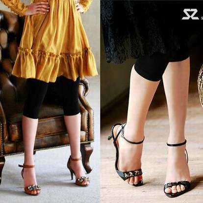5. 小腿较粗的女士需要穿盖过小腿的长款、深颜色的紧身裤。最好不要选择长度刚好到小腿肚的紧腿裤,由于视线落在小腿最多肉的位置,所以更容易引起粗腿的错觉。