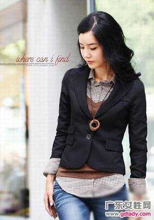 点评:OL最常穿着的西装外套,选择适合的款式也能够达到修身的效果哦,关键是完美的刀背形剪裁,可以掩盖粗腰的问题。