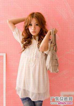 点评:各位MM还可以尝试一下转移视线的办法,选择简单的上衣搭配略带夸张的荷叶边造型领口的外套,荷叶边的外套具有抢眼的视觉效果,让视线停留在上半身,自然就不会轻易留意到你的腰部了。