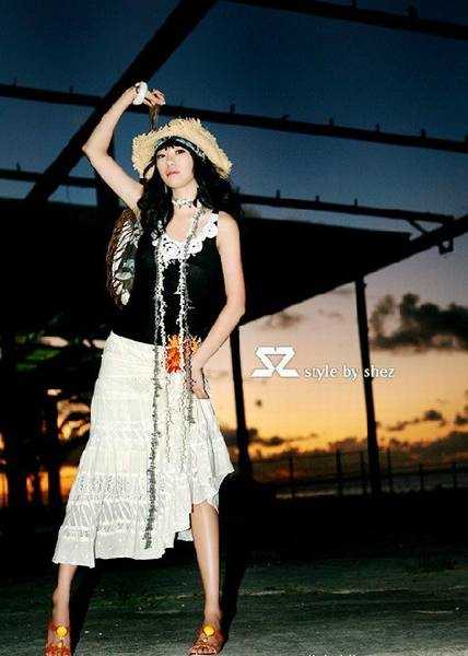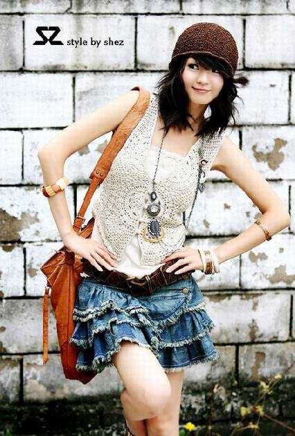 超短牛仔群,搭配短衫,再配上一双休闲的皮拖.非常可爱俏皮的形象