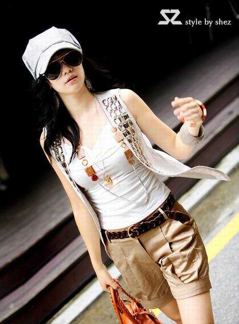公主内衫搭配小马甲,短裤,带上一条时装链加以修饰,活脱脱一个都市时尚丽人