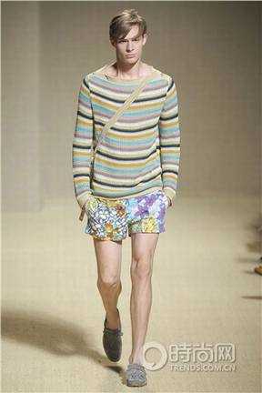 一字领的宽松针织衫配合亮眼的彩色条纹,Missoni给我们带来一个轻快的夏天。再搭配上热带感的花朵印花短裤,一派轻松惬意的心情。不要忽略脚上那双灰色的带穗帆船鞋,这可是休闲绅士风必备的单品。
