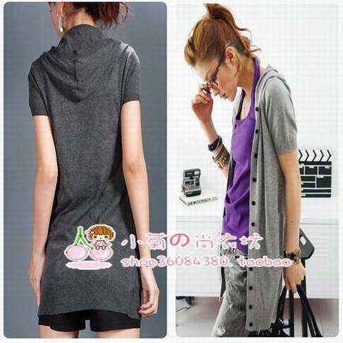冲五钻特价 韩版短袖连帽开衫/长款/2口袋针织衫 多色入 28.0元