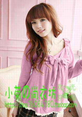 韩版基本款 蝴蝶结长袖针织衫/毛衣 27.5元