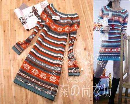 尚衣坊实拍★4钻特价 09韩版时尚新款 雪花图案长款毛衣裙3色 48.0元