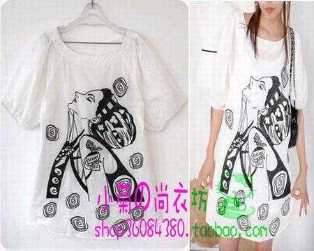 09新款特价 民族风美女头绣花全棉长款T恤 38.0元