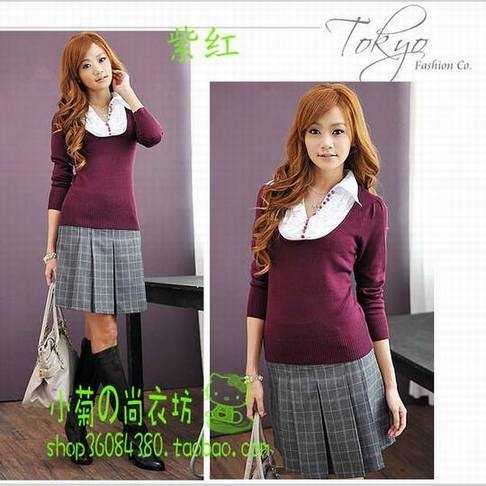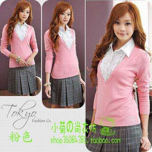 尚衣坊★09新款 韩版淑女修身款 深V领褶皱细花边衬衫领针织衫 36.0元