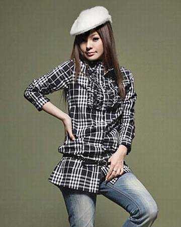 09春夏新款特价 日韩瑞丽淑女款 芭波瑞经典格子长袖中长款衬衫 30.0元