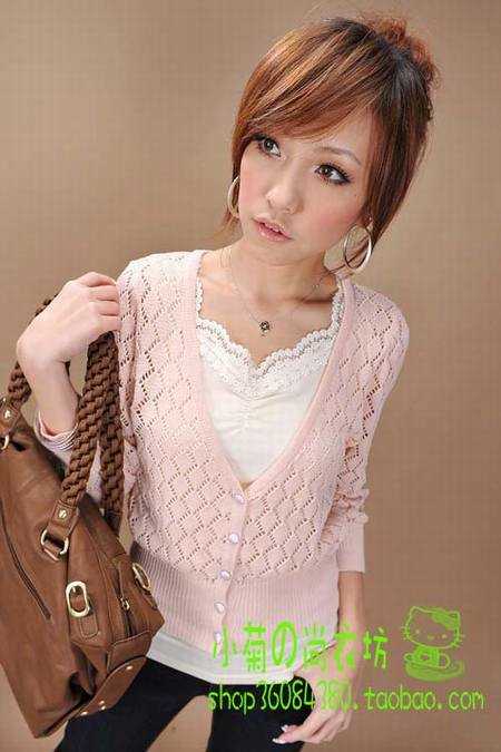 尚衣坊★09新款 韩版淑女修身款 低V领镂空菱形针织罩衫/开衫 33.0元