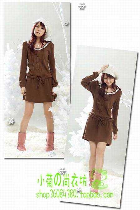 尚衣坊★09新款 韩版淑女修身款 蕾丝领收腰抽绳长款针织连衣裙 28.0元