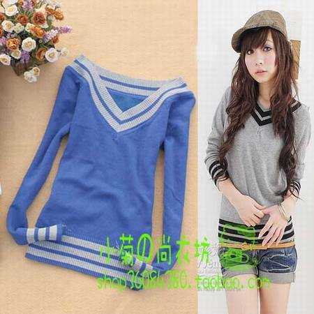 尚衣坊★实拍09新款春装上架 韩版の简约条纹单V领长袖针织毛衫 39.0元