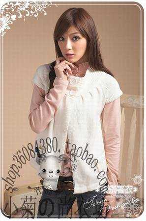 尚衣坊★特别推荐 09韩版潮流 瑞丽二扣立领短袖毛衣 29.8元
