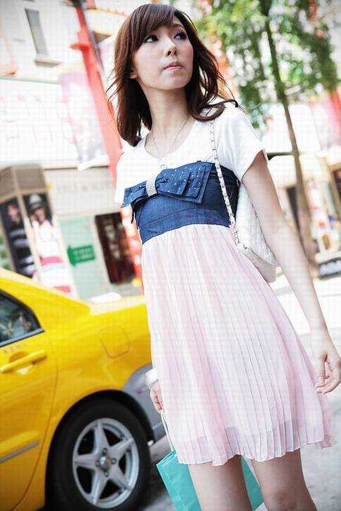 【推荐语】胸口蝴蝶结带烫钻,裙摆式规则荷叶边设计,上身和下裙是不同的布料撞合,一条裙子穿出多元化的感觉,不会因为同色调而显得单调哦,合身的剪裁,彰显成熟女士味!