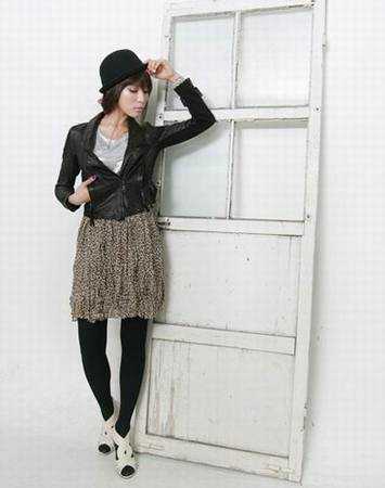 皮衣和雪纺裙搭配出不一样的辛辣感