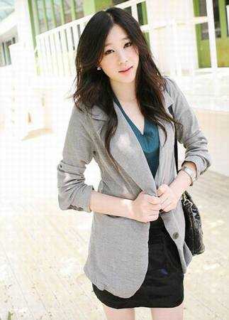 灰色长款西装很有亲和力