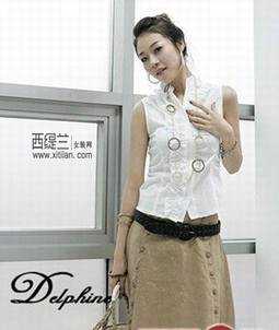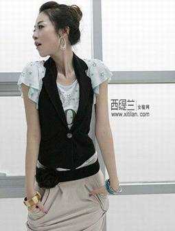 夏天衣服搭配点评二:腰部粗壮 如何穿法?休闲的外搭黑色的小马甲,同时带上黑色的大大的腰带,下身搭配卡其色的铅笔,可以试试哦!!