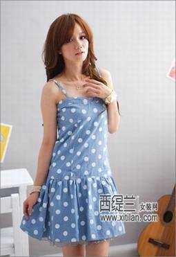 夏天衣服搭配点评一:想要拥有普普的气质和度假悠闲的特性,轻松的穿出海洋的风格来,出色抢眼中还多着亮丽甜美的风采,那么点点的图案是夏天专属的气息,浅蓝色的好感配色刚好展现纯净的女生气质,非常适合皮肤比较白皙的女士喔。