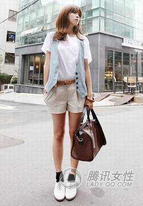 点评:很有英伦绅士气质而又不乏休闲感的装扮:短袖 搭配蓝灰色西装马甲非常正统的绅士上装搭配休闲的卡其色 ,帅其中不乏 感。注意选择中长款式的马甲,才能体现绅士的帅气哦。