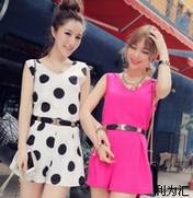 这款连体的波点款式也蛮不错的,腰间加一条腰带,这样更加的显瘦了,一般波点的款式能够更加的显瘦的,相信很多的女生都穿过吧,本女装小编就淘过一套波点的,个人觉得还是不错的,夏季里面穿很舒服的,爱美的女生们何不尝试下,换换不同的风格搭配试试看呢,也许你会发现一款是比较适合你的,对不对呢?