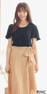 优雅的裸色,细腻的压褶,腰间的蝴蝶结,保守而带着淑女风范的高腰裙,搭配简单衬衫让你演绎经典的复古风潮。