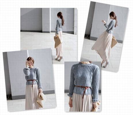 告别秋季你的秋装是不是也已经早早被你收入衣橱深处了呢?赶紧把你的飘飘长裙拿出来吧~如果你抗寒能力低那就穿个打底裤吧(反正也不会被发现~HOHO),上衣可以直接外套毛衣,为了避免视觉上产生臃肿感,建议用腰带进行合理划分,拉伸比例的同时又能塑造曲线,肉粉色与淡蓝色的温柔展现,爱优雅的你何乐而不为?!