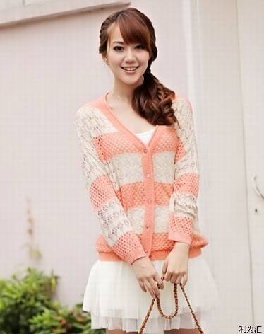 同材质的针织开衫,有不同的味道,暖暖的秋天,女装用粗条纹糖果色开衫来挑战一下把! 想要尝试不同的风格,可搭配牛仔长裤或者是短裙,有不同的效果哦! 此款针织透气性好,弹力可最大拉伸,休闲俏皮哦!