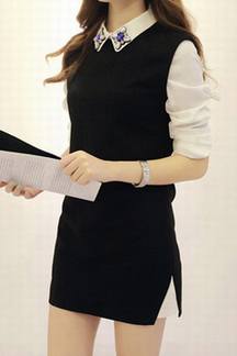 很显气质的一件针织衫呢,烫钻拼接的骷髅头设计,很有设计感。韩国代购欧美复古优雅针织毛衣泡泡袖格子毛呢收腰蓬蓬连衣裙,菁菁款,难得一见,欧洲站欧美复古专柜娃娃领针织欧根纱蓬蓬泡泡袖毛衣连衣裙,