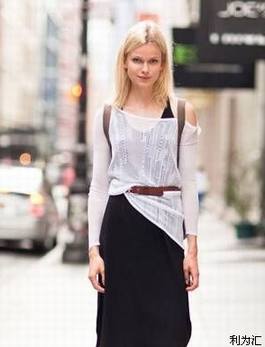 好搭的背心裙,无论是夏天还是秋天都很适合穿着,搭配一件透视的白色露肩上衣,初秋的性感悄悄崭露,巧用腰带调节身材的比例,是每个 mm 都要学会的必备技能。
