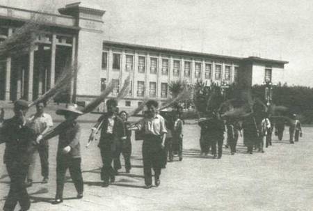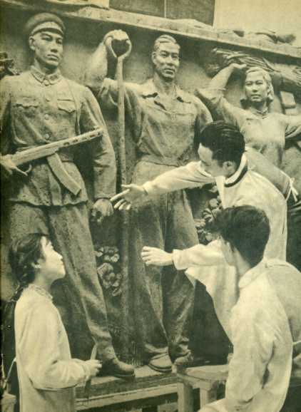 中央美术学院的社会活动 1949年由董希文主笔,中央美术学院1952届绘画系甲班绘制大幅领袖像迎接解放。 1953年中央美术学院绘画系团总支团日活动。 中央美术学院雕塑系师生在讨论全系师生集体创作的雕塑。原作长16.75公尺,共有19个塑像。 1956年中央美术学院师生参加清洁劳动。 1961年中央美术学院油画系二年级外光作业。