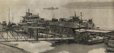 长江北岸的枞阳县码头,是中国人民解放军渡江作战的渡口。图中前方为铁板沙,当年曾进行过激烈的战斗。(1979年)