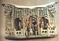 (元)景德镇窑青釉镂雕建筑枕。1981年岳西县出土,高16厘米。