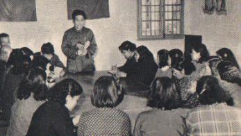 办起公社后,社员们的政治文化学习非常活跃。这是业余党校在上课。(1960年)