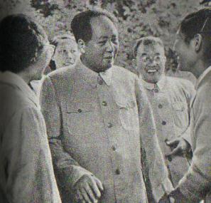 1958年9月16日,毛主席视察安庆一中时,与学校教师王玉贵(右一)等亲切握手。