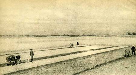 村里的王宝昭互助组在割完麦子后开始耕地,准备种大豆。