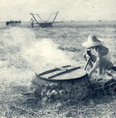 在辽阔的麦田里,随处都是烧开水的临时锅灶。