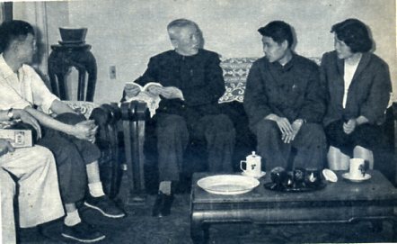1958年9月18日,毛主席在视察合肥钢铁厂(原省委钢铁厂)时,和青年工人亲切交谈。