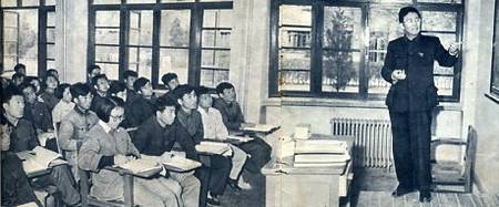 中国科学院副院长吴有训亲自担任基础课。这是他和青年助教一同研究教学进程。