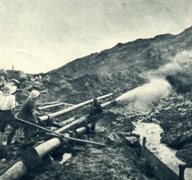 新建的铜官山铜矿用水力剥离矿石。(1957年)