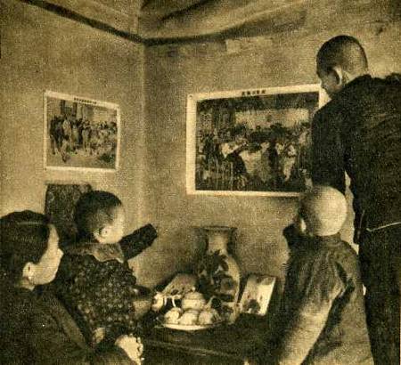 在春节中,“新年画”也是最受劳动人民所欢迎的。北京郊区六郎庄全国农业劳动模范刘金荣在春节前就挂上了新年画,使屋里气象一新。