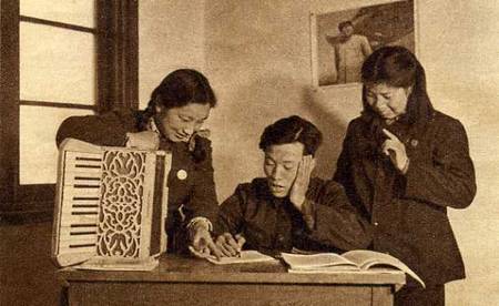 音乐教师曹试甘为了克服教学上的困难曾创制了20余种新的教学工具。