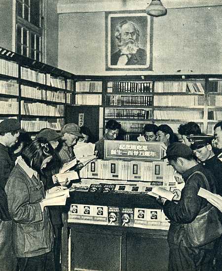 北京市各界人民在新华书店门市部购买马克思的各种著作。