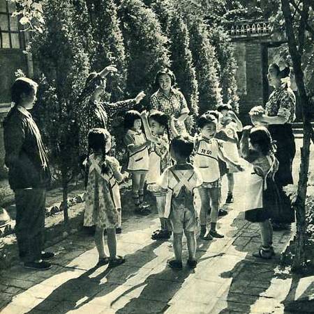 长子宝源和次女佩玉(滑梯上面两个孩子)都是工厂子弟小学校的学生,他们正在校园里游戏。