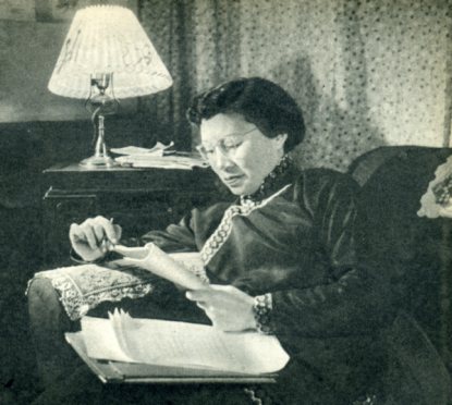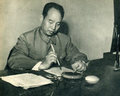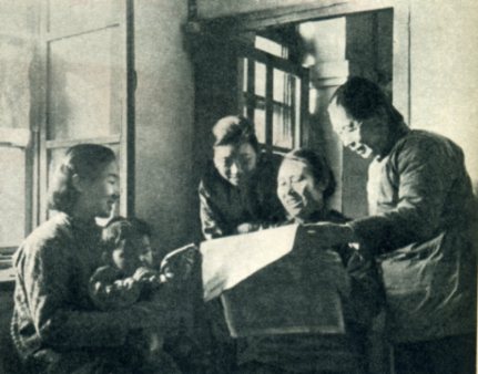 居民之间展开了扫除文盲的工作,居民委员会主任张延社利用晚间的空闲替大家选择材料。