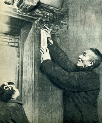 为了居民们购买国家经济建设公债的方便,居民委员会在胡同设立了公债认购站。